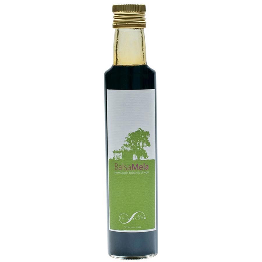 Balsamela, or apple balsamic, is a traditional vinegar produced by Acetaia San Giacomo. Not to be confused with a flavored balsamic, this product is made by cooking and reducing whole apples, sourced from Alto Adige, into a thick syrup that is acidified and aged in oak barrels for up to 3 years. Think about it as the apple-based cousin of Saba!