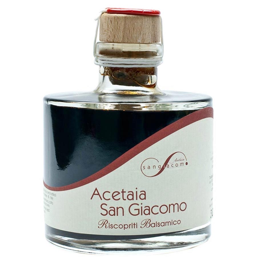 Sourced from San Giacomo’s own organic Trebbiano & Lambrusco vines, Condimento Balsamico is a reduced grape must that has been aged in 7 varieties of wood barrels for a beautiful & complex flavor. Forget everything you know about so called ‘aged balsamic.’ This is the real deal!