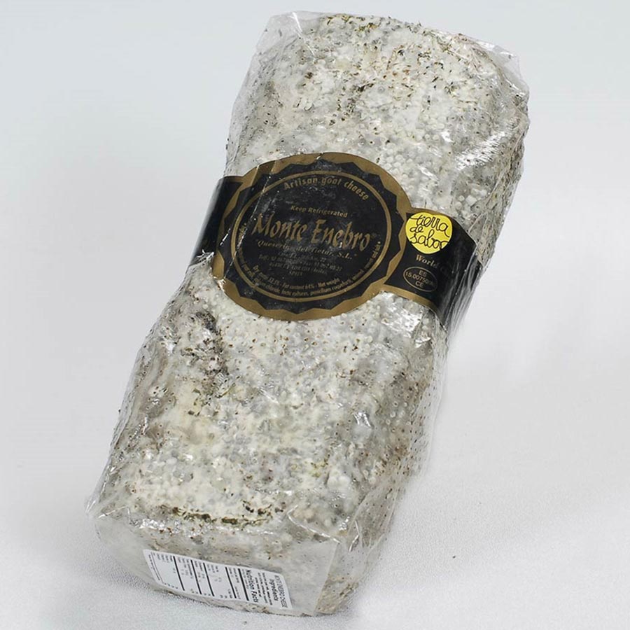 Monte Enebro is handmade in Avila, Spain, by legendary cheesemaker Rafael Baez and his daughter Paloma. The Baezs make their complex goat's milk cheese from pasteurized milk and innoculate the logs with the same mold used to make Roquefort, adding to Monte Enebro's complexity and distinctive appearance. Aged 30-45 days in the Sierra del Gredos mountains, Monte Enebro is creamy, lemony and slightly acidic; as it ages, the texture becomes denser and the flavor acquires more intense, pungent finish.